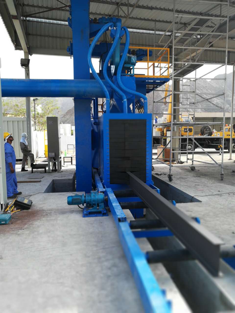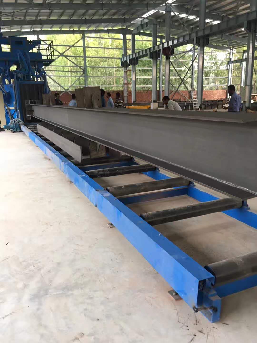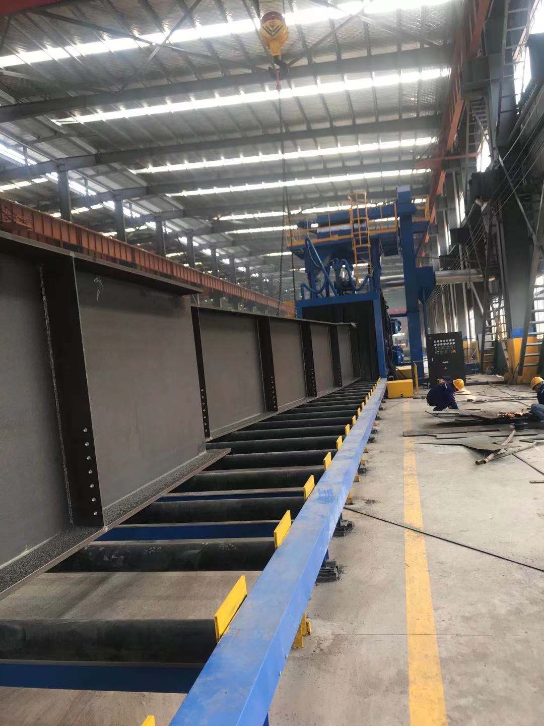 The HGP series shot blasting machine is a roller conveyor automatic shot blasting cleaning equipment, mainly used to clean the oxide scale, rust, etc. on the surface of H-beams, so as to obtain a smooth surface with a certain roughness, increase the adhesion of the paint film, and improve the fatigue strength, surface quality, and anti-corrosion effect of the workpiece.