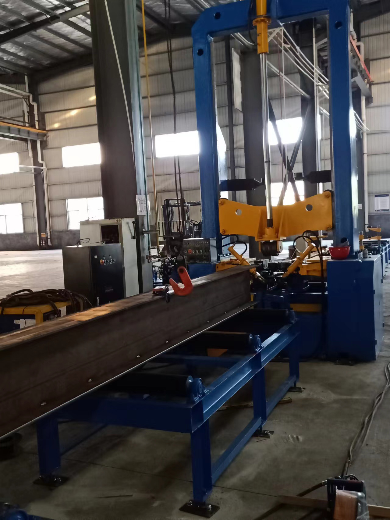 H-beam straightening machine is a specialized equipment used by steel structure manufacturers to straighten H-beams. There are two types of machines available: mechanical straightening for light steel and hydraulic straightening for heavy steel.